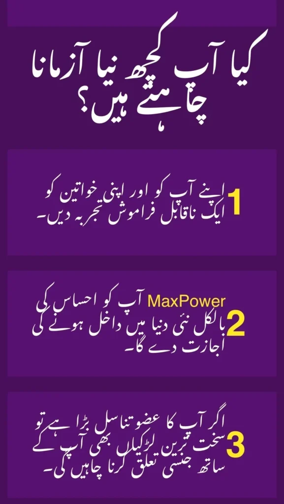 اپنی اندرونی طاقت کو MAX POWER کے ساتھ اجاگر کریں — قدرتی اجزاء کا ایک طاقتور مرکب جو مردانہ قوت، توانائی اور تولیدی صحت کو سہارا دینے کے لیے ڈیزائن کیا گیا ہے۔ چاہے آپ کم توانائی، تناؤ یا کارکردگی کے مسائل سے نبردآزما ہوں، MAX POWER توازن اور اعتماد بحال کرنے میں مدد کرتا ہے۔